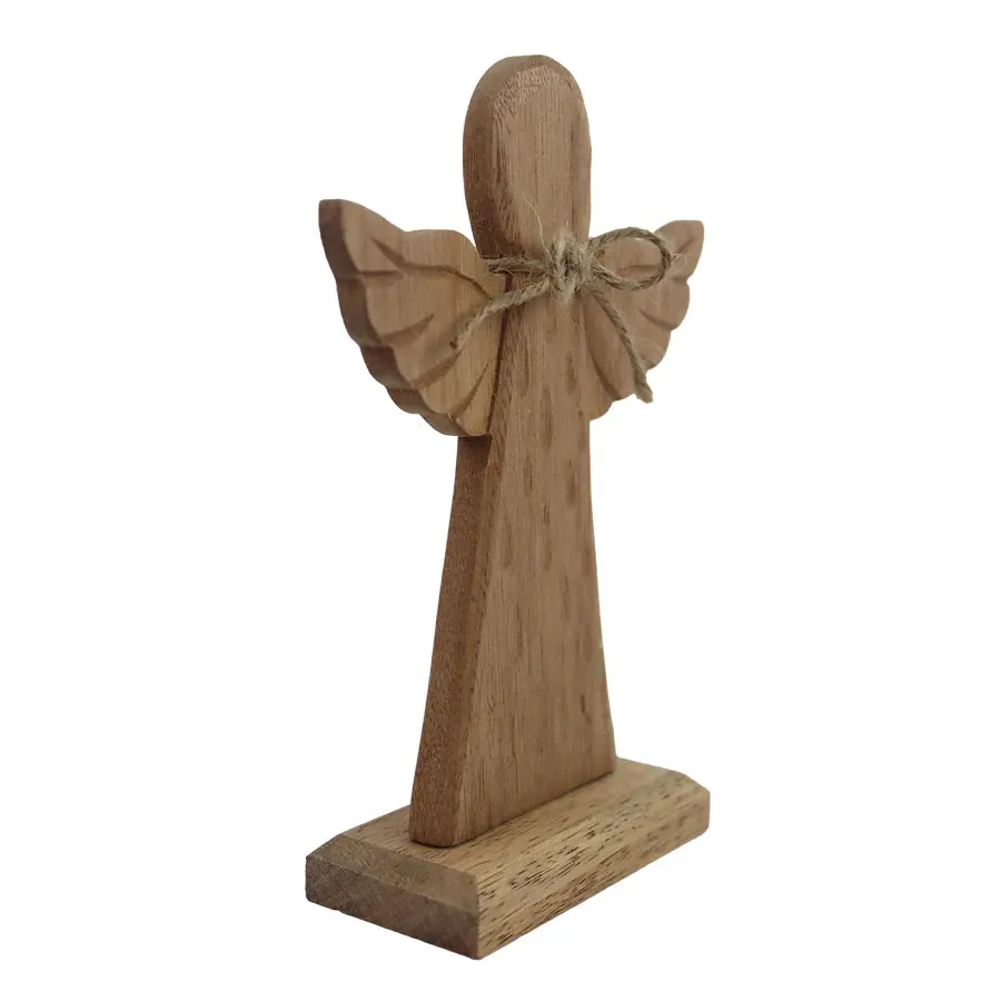 Decorative angel. Dimensions: 15.5 × 5 cm, height 20.5 cm. Color: Natural. Wood -based material.