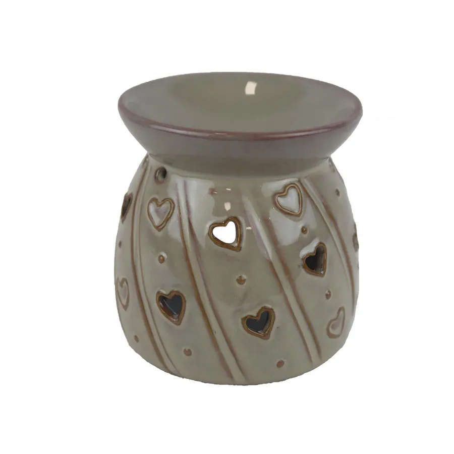 Beautiful aroma lamp with hearts. The aroma lamp is excellent for vaporizing essential oils dissolved in water or wax aroma capsules. The aroma lamp will not only serve as a diffuser for freshening the air, but is also a nice, tasteful decoration for any interior.