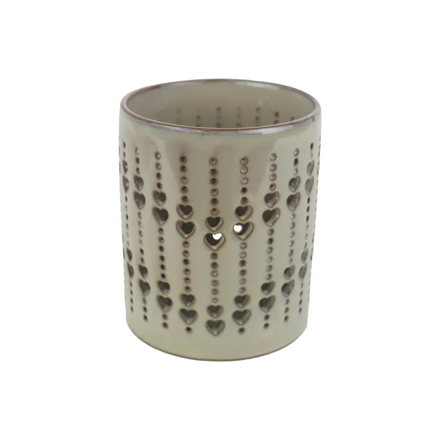 Aroma lamp with hearts. The aroma lamp is excellent for vaporizing essential oils dissolved in water or wax aroma capsules. The aroma lamp will not only serve as a diffuser for freshening the air, but is also a nice, tasteful decoration for any interior.