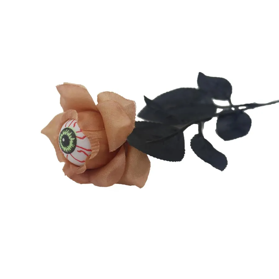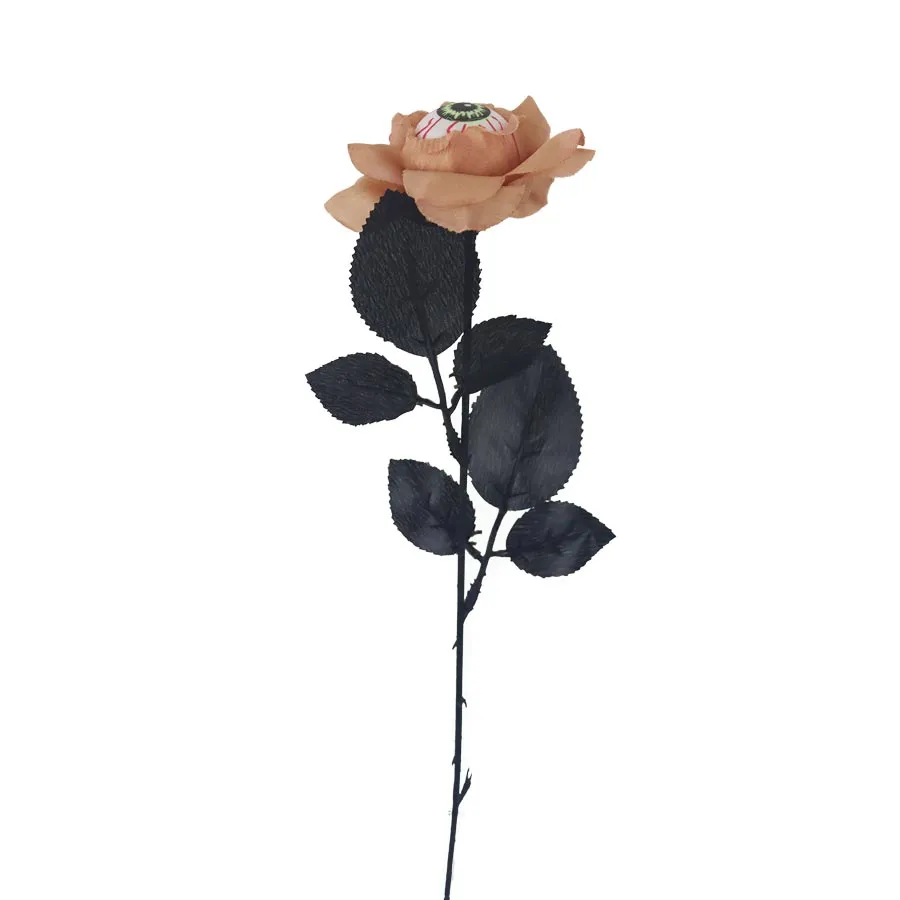 Artificial peach-colored rose with an eye in the center. Great choice for horror decorations.