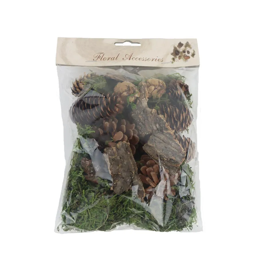Autumn decoration pine cones, moss in a bag of 90 - 100 grams.