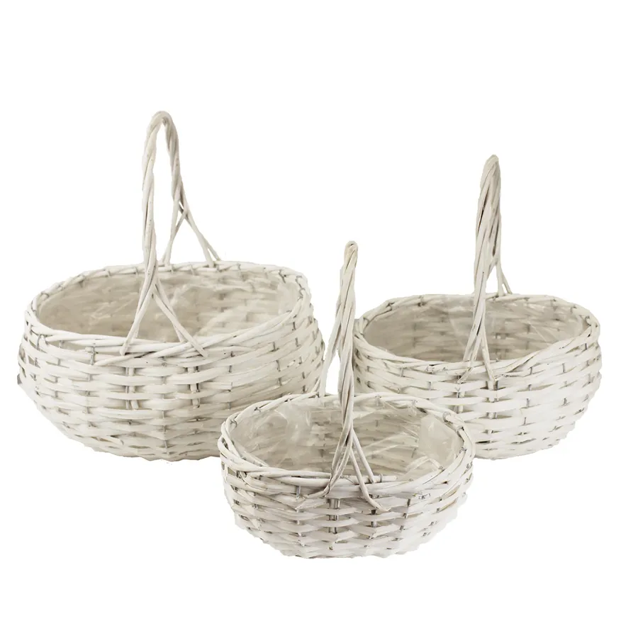 Set of 3 Pcs. Size of the baskets: Small: 20 x 15 cm. The height with handle is 25 cm (without 10 cm). Medium: 24 x 19 cm. The heigth with handle is 30 cm (without 12 cm). Large: 27 x 26 cm. The height with ahndle is 30 cm (without 14 cm). Dimensions: Please note all dimensions are approximate, the baskets are all handmade and therefore unique. The dimensions given are an indication of the approximate size, also the color may little vary slightly. Variance of size +-2 cm.