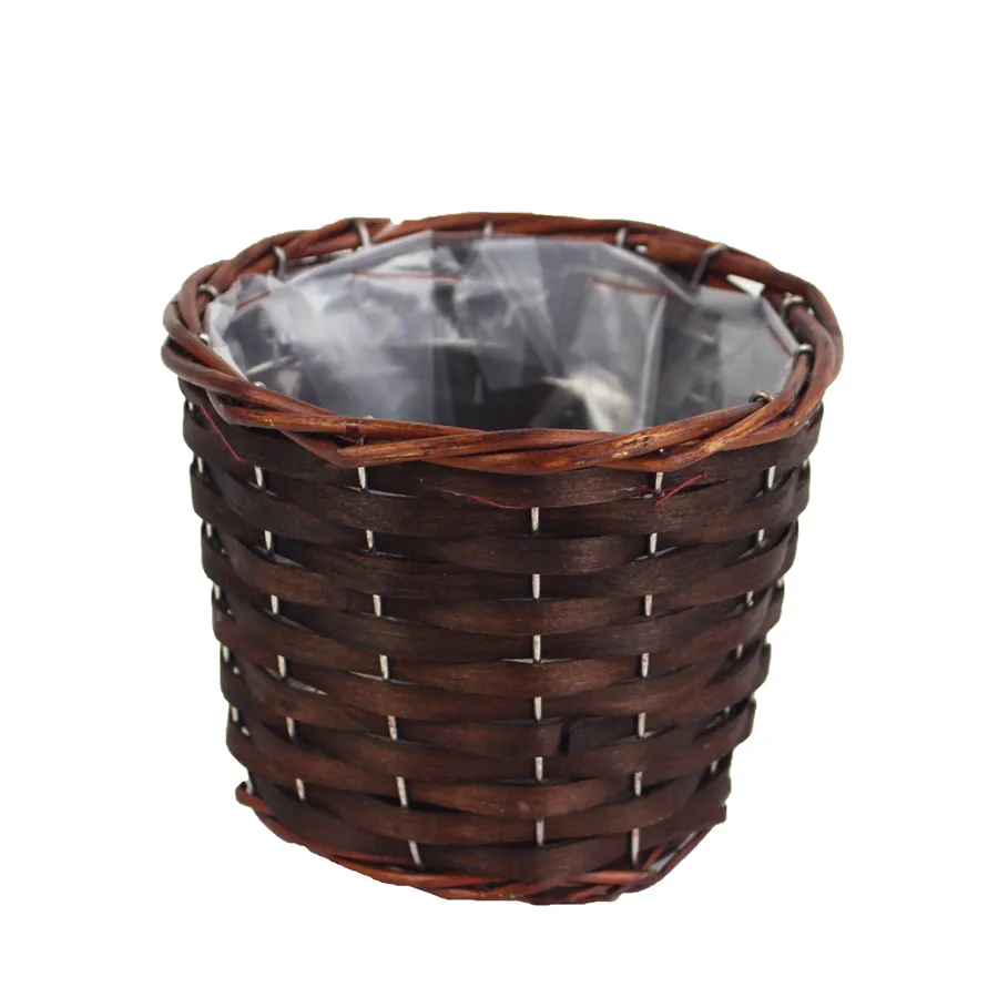 Flower pot with plastic foil. Size: dia 15 x 12 cm. Color: brown. Material: wicker, plastic. Dimensions: Please note all dimensions are approximate, goods are all handmade and therefore unique. The dimensions are given an indication of the approximate size, also the color can be little different. Variance of size +-2 cm.