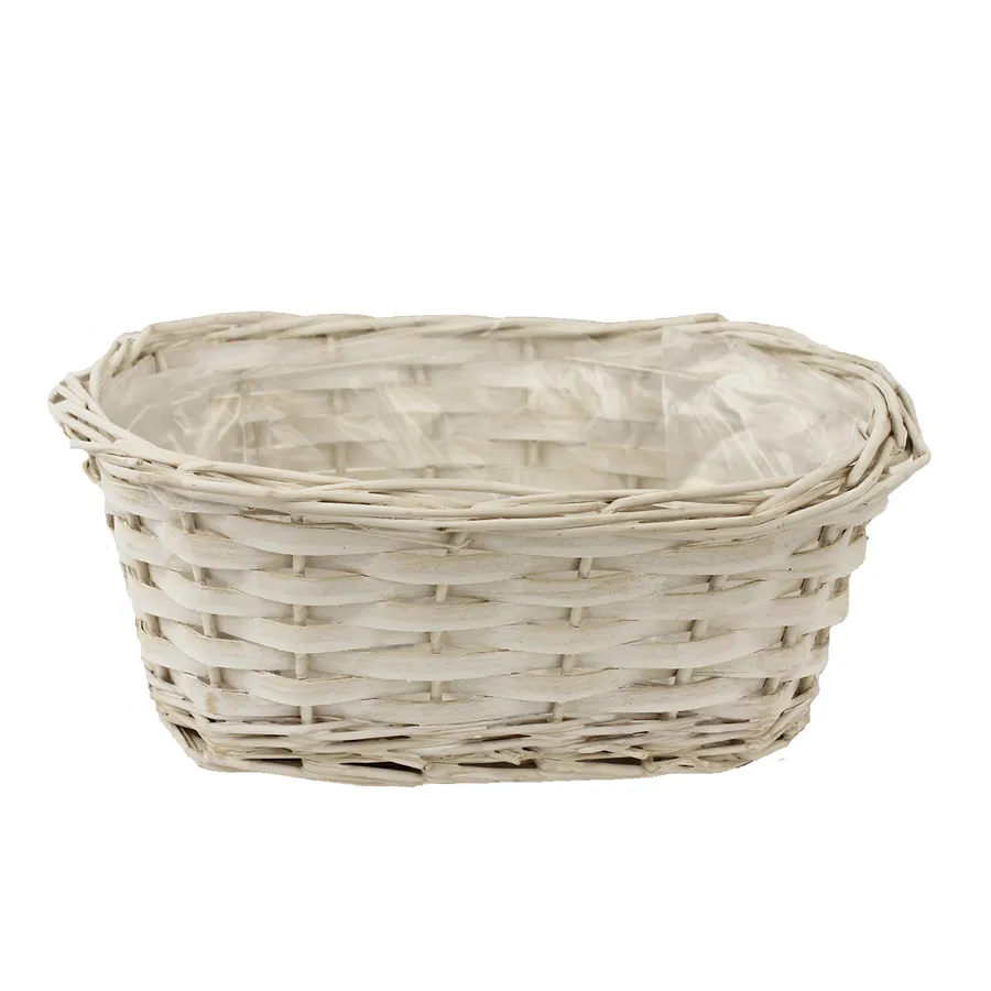 Flower pot with plastic foil. Size: 25 x 16 cm, height 10 cm Color: white Material: wicker, plastic