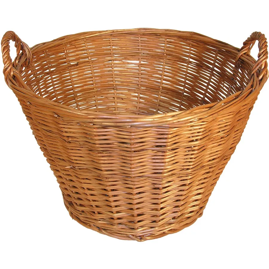 The basket for the garden, for wood, is made of boiled wicker. The bottom of the basket has a diameter of 37 cm.