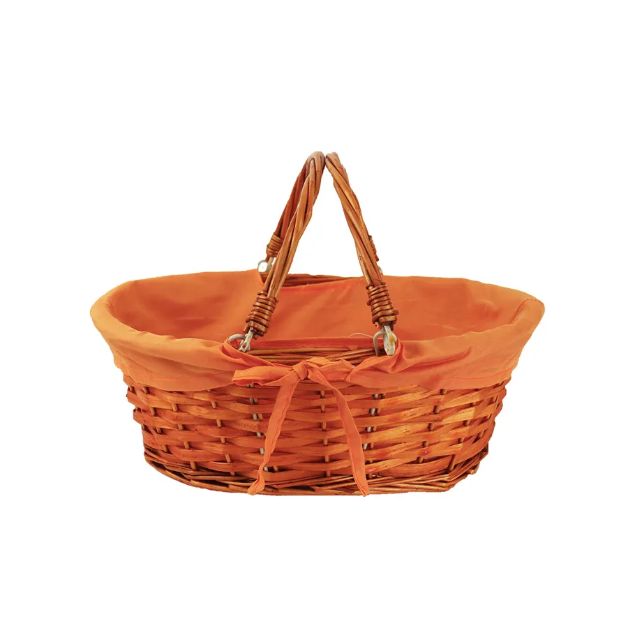 Basket with two handles orange. Dimensions: Please note all dimensions are approximate, the baskets are all handmade and therefore unique. The dimensions given are an indication of the approximate size, also the color may little vary slightly. Variance of size +-2 cm.