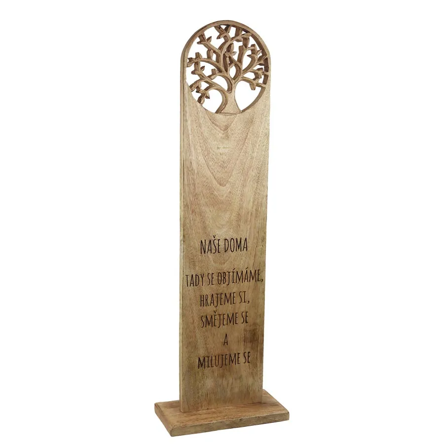 Welcome your visitors with unique style thanks to our wooden board made of mango wood "Our Home". The board is a beautiful design piece that will add a distinctive touch to your home. Made of high-quality mango wood, it boasts durability and longevity. Each piece is unique due to natural variations in the wood structure and color. Not dishwasher safe, do not soak, wipe only with a damp cloth. Treat with edible oil occasionally. It is possible that the mango wood will darken after this process.