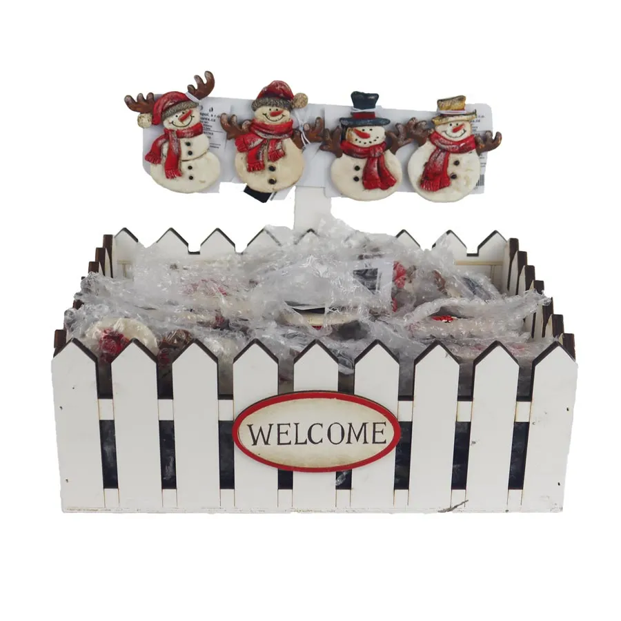 Box of Christmas magnets. The box contains 72 magnets, 4 types of snowmen.