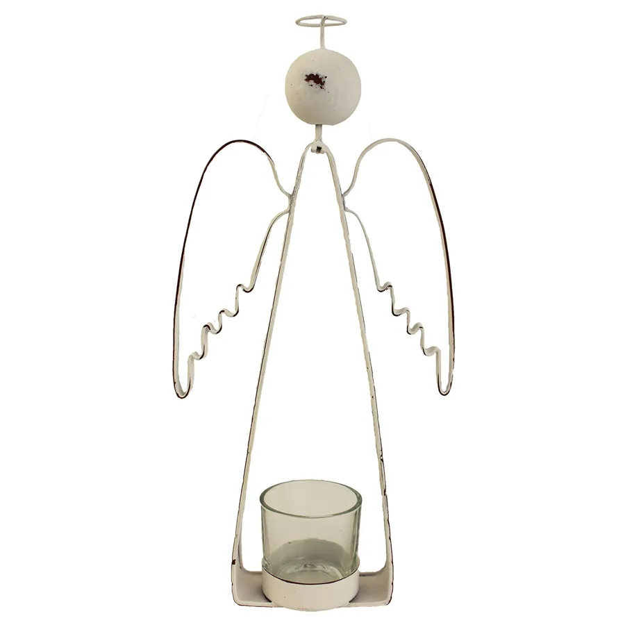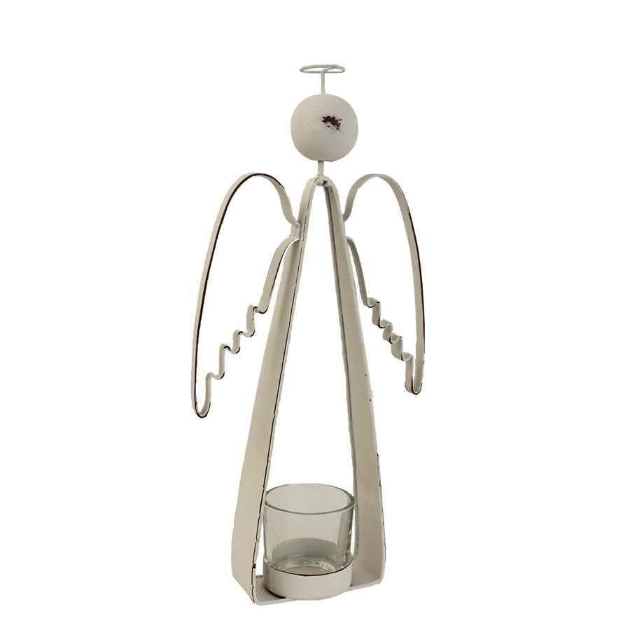 Candle holder for 1 candle. Size: 15.5 x 5 cm, height 28 cm. Color: white. Material: metal, glass.