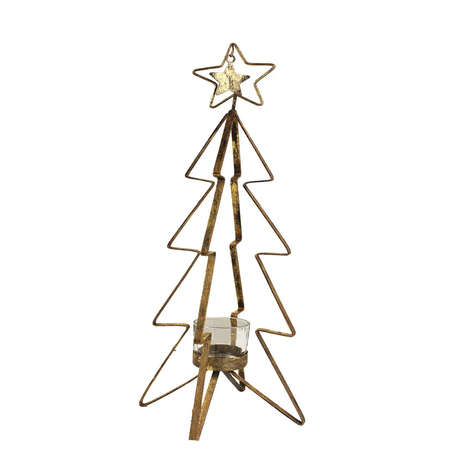 Candle holder for one candle. Size: 10 x 10 cm, height 31 cm. Material: metal, glass.
