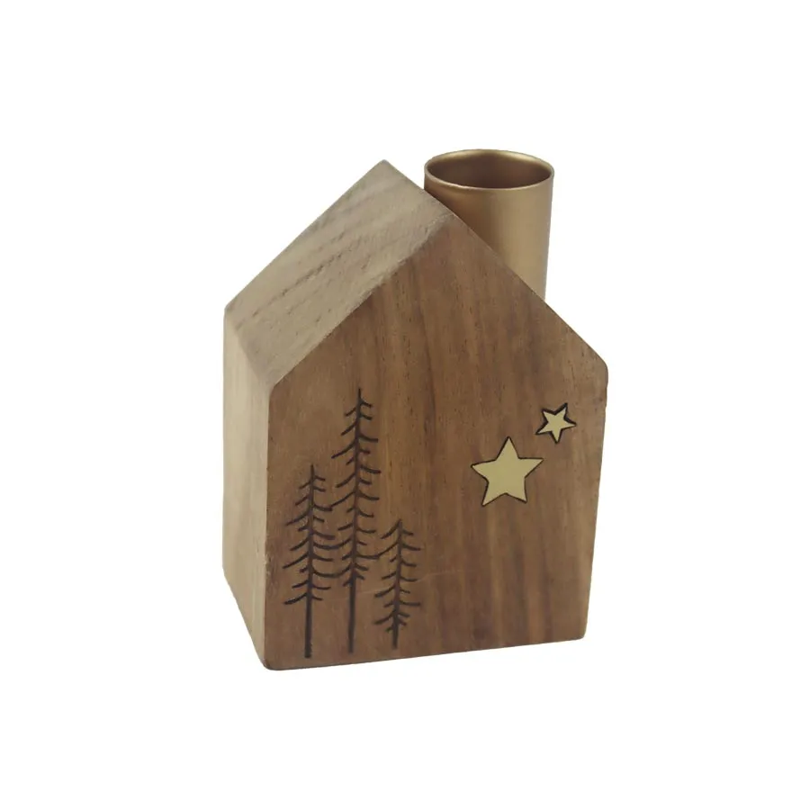 Candlestick mango/sheet metal BLACK 18x18x25 cm