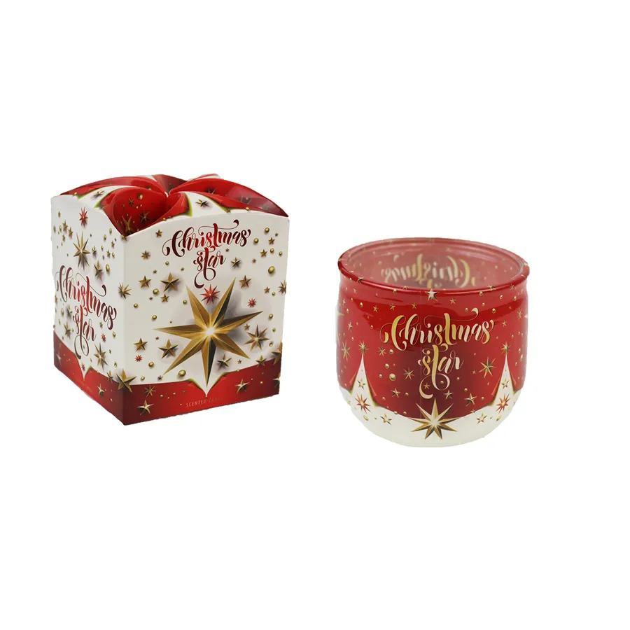 Scented candle in glass - EXCLUSIVE STAR WHITE. The glass has a diameter of 7.8 cm, a height of 7 cm. A candle in a glass with a pleasant scent will perfectly scent your apartment and at the same time can also serve as a decoration. The burning time of the candle is 25 hours.