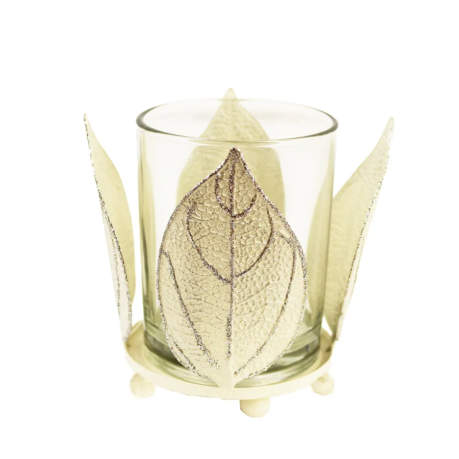Candle holder for one candle. Color: champagne. Material: metal, glass.