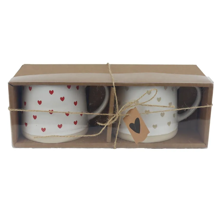 Set of ceramic mugs with hearts in a gift box. The set includes 2 mugs. The mug has a volume of 360 ml.