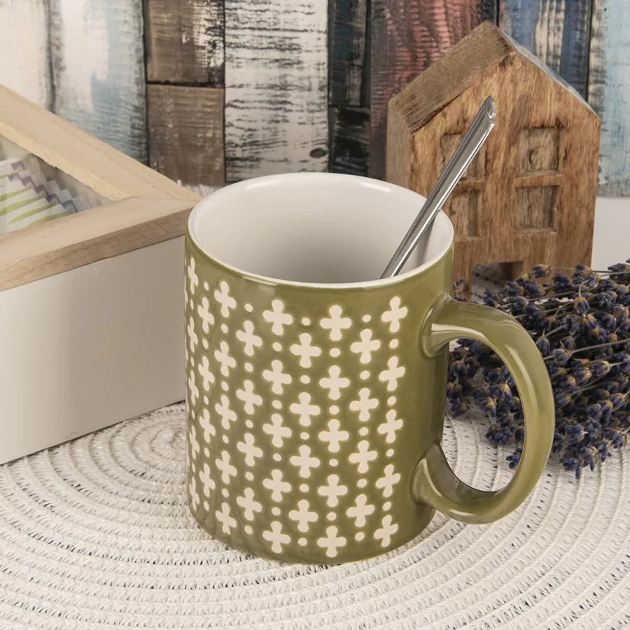 Ceramic mug CROSSES 0.35 l green mix set 4 pcs O0355-16