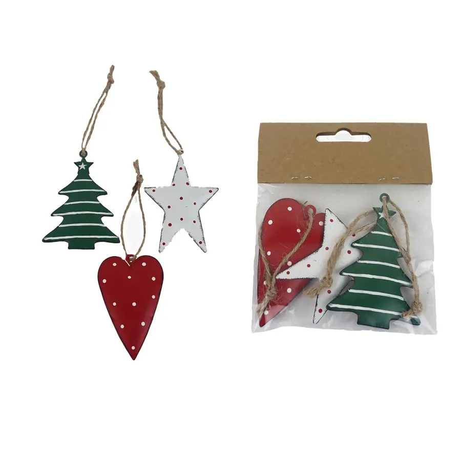 Set of Christmas decorations for hanging. The set contains 3 decorations. Dimensions: Color: combination red, green, white. Material: metal.