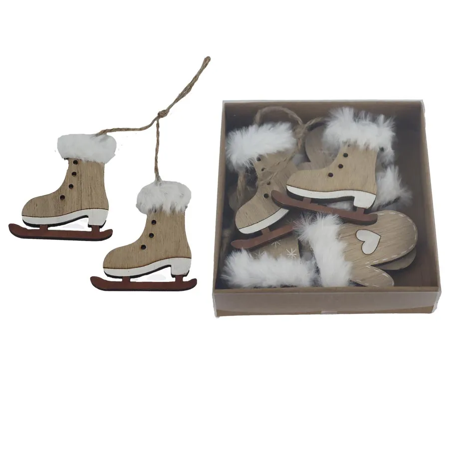 Set of Christmas decorations for hanging. The set contains 8 decorations. Dimensions: Color: Combination brown, white. Wood -based material, textiles.
