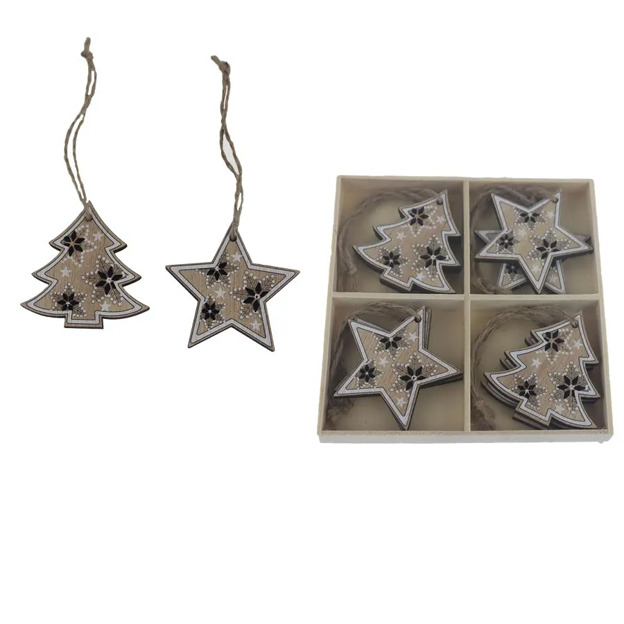 Set of Christmas decorations. The set contains 8 decorations. Dimensions: Color: Combination brown, white. Wood -based material.