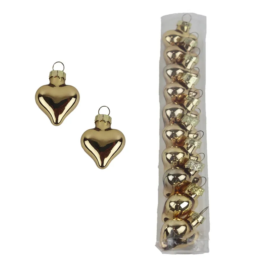 Set of decorative hearts for hanging. Dimensions : 2,8 x 1,5 cm, height 4 cm. Colour : gold. Material : glass.