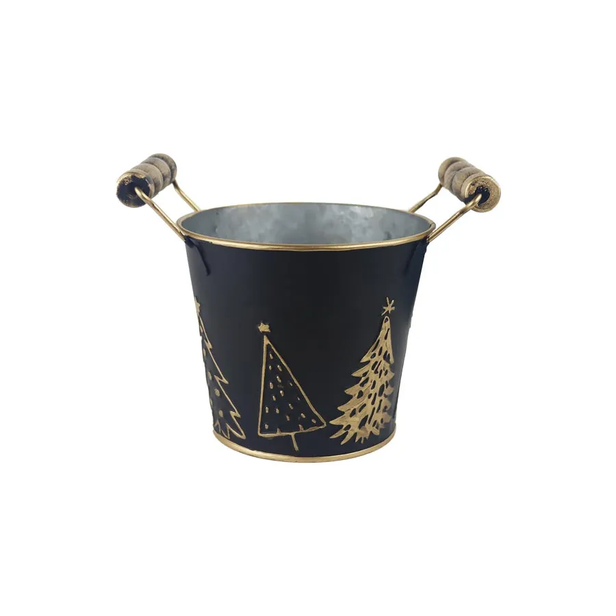 Christmas planter. Dimensions : diameter 12 cm, height 10 cm. Colour : combination of black, gold. Material : metal.