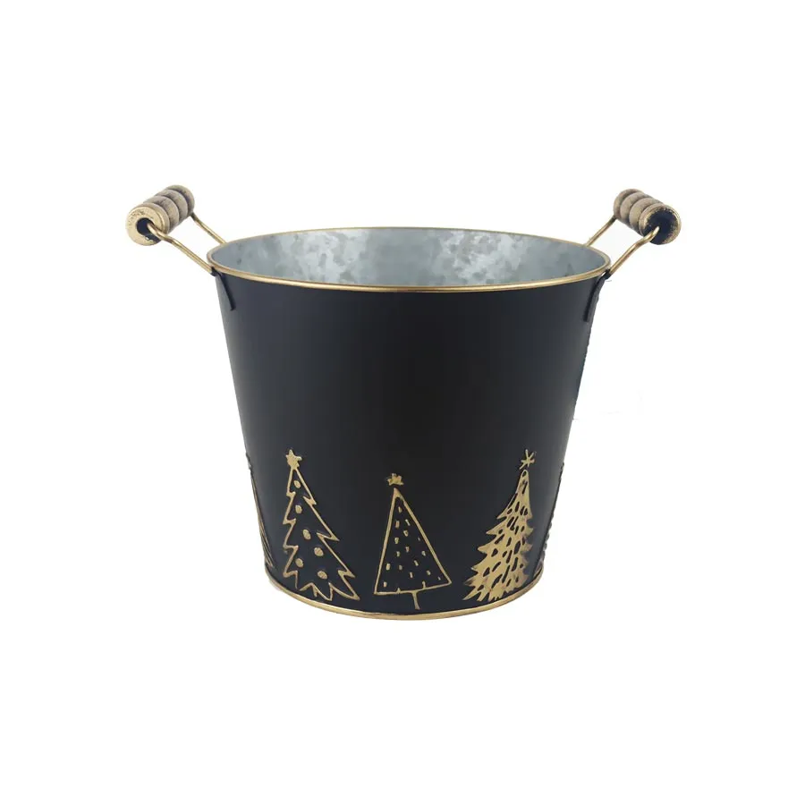 Christmas planter. Dimensions : diameter 17 cm, height 14 cm. Colour : combination of black, gold. Material : metal.