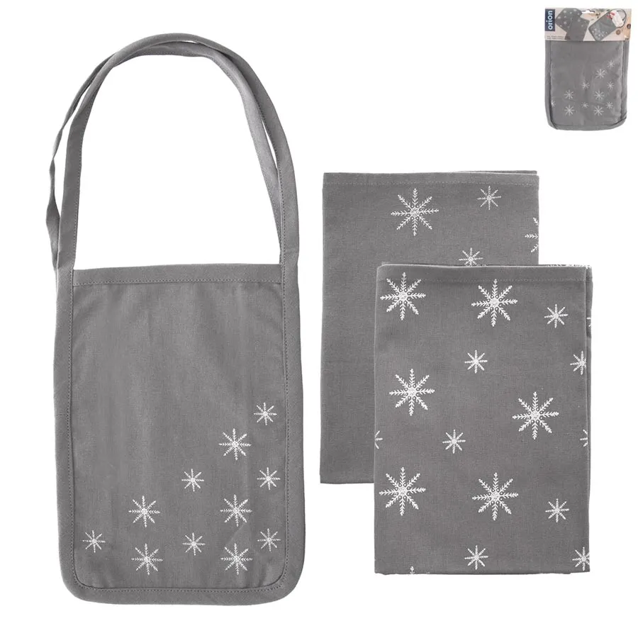 Cotton kitchen towel 2 pcs + bag SNOWFLAKE O0506