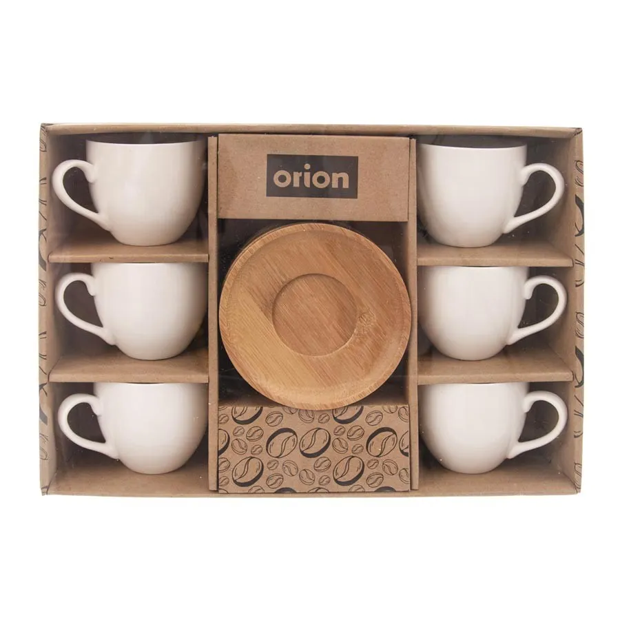 Mugs have a diameter of 6.5 cm, height 6 cm, saucers have a diameter of 9.5 cm.