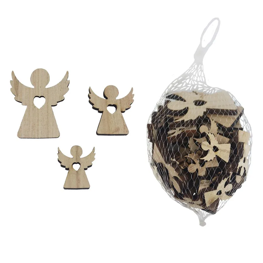 Set of decorative angels. The set contains 30 angels in three sizes. Dimensions: Color: natural. Wood-based material.