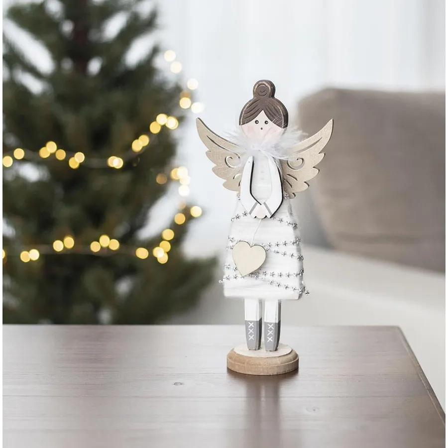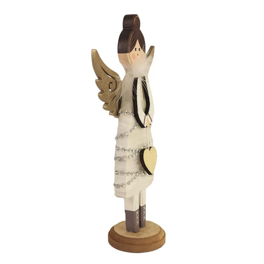 Color: combination of white and brown. Material: alternative to wood, cotton wool.