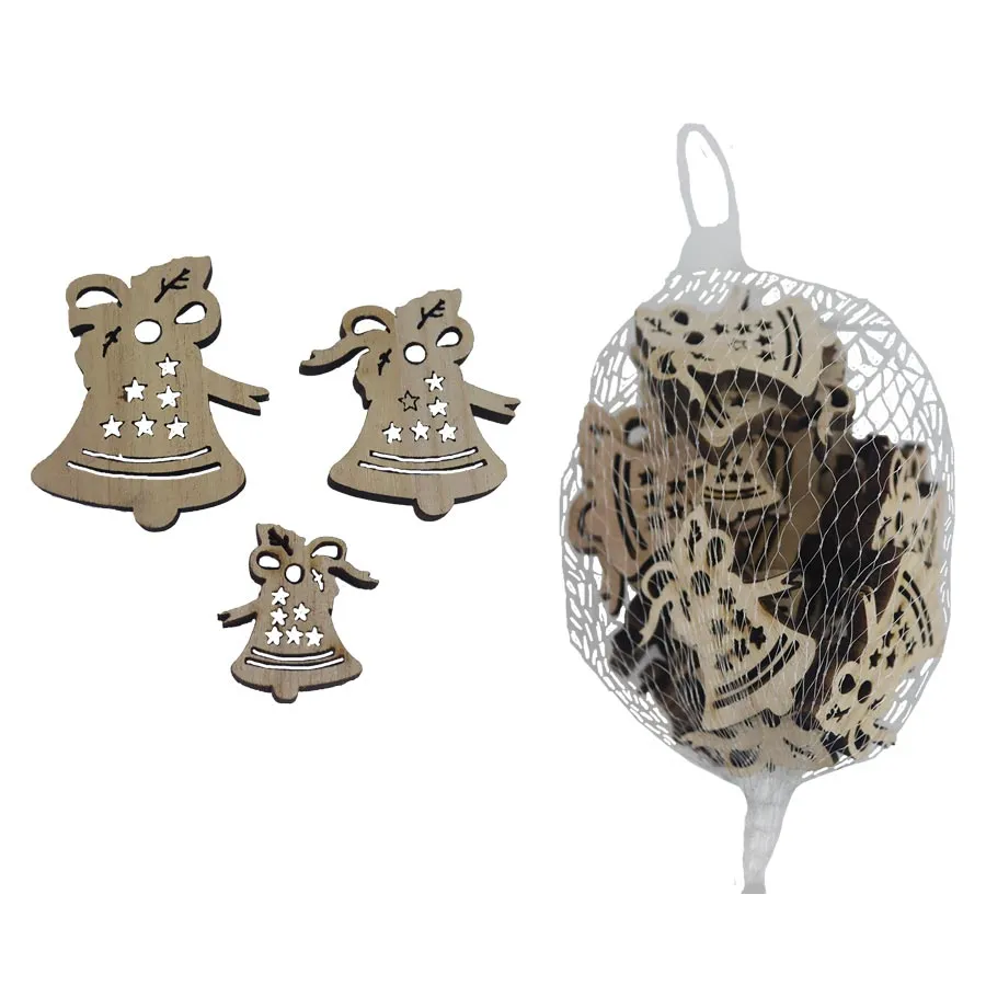 Set of decorative bells. The set contains 30 bells in three sizes. Dimensions: Color: natural. Wood-based material.
