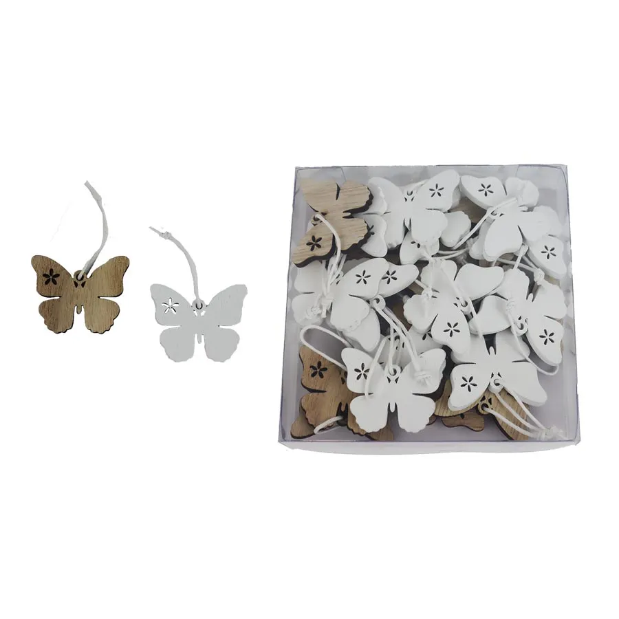 Set of decorative bow ties for hanging. The set contains 24 bow ties. Dimensions: 3.5 x 3 cm, thickness 0.4 cm. Color: white, natural combination. Wood-based material.