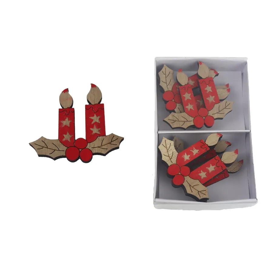 Set of candle -shaped decorations. The set contains 6 decorations. Dimensions: Color: Natural combination with red. Wood -based material.