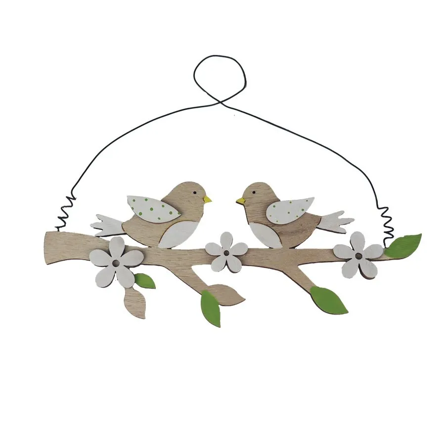 Decoration for hanging. Dimensions: 24 × 26 cm, thickness 1 cm. Color: combination of natural, white, green. Wood-based material, wire.