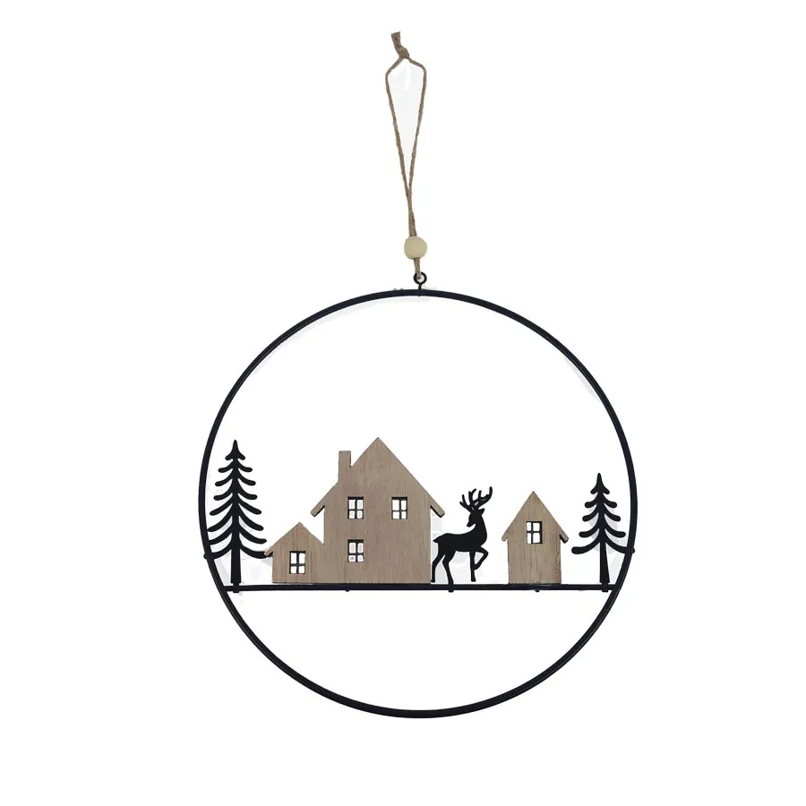 Decoration to hang. Dimensions: 21 × 20 cm, thickness 1 cm. Color: combination of black, natural. Wood -based material, metal.