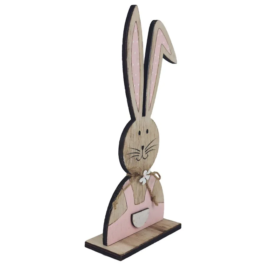Decorative hare. Dimensions: 8.5 × 4.5 cm, height 18.7 cm. Color: combination of natural and pink. Wood-based material.