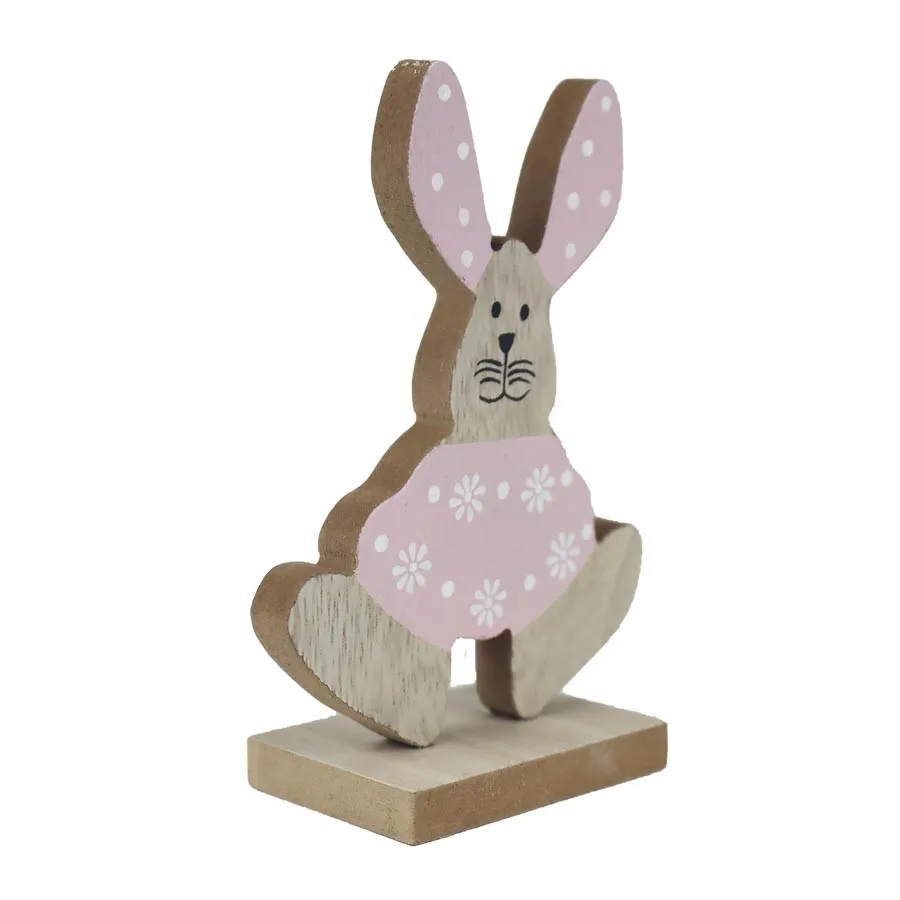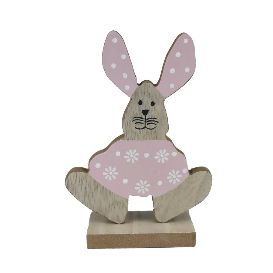 Decorative hare. Dimensions: 13 x 9.5 cm, height 4 cm. Color: combination of natural and pink. Wood-based material.
