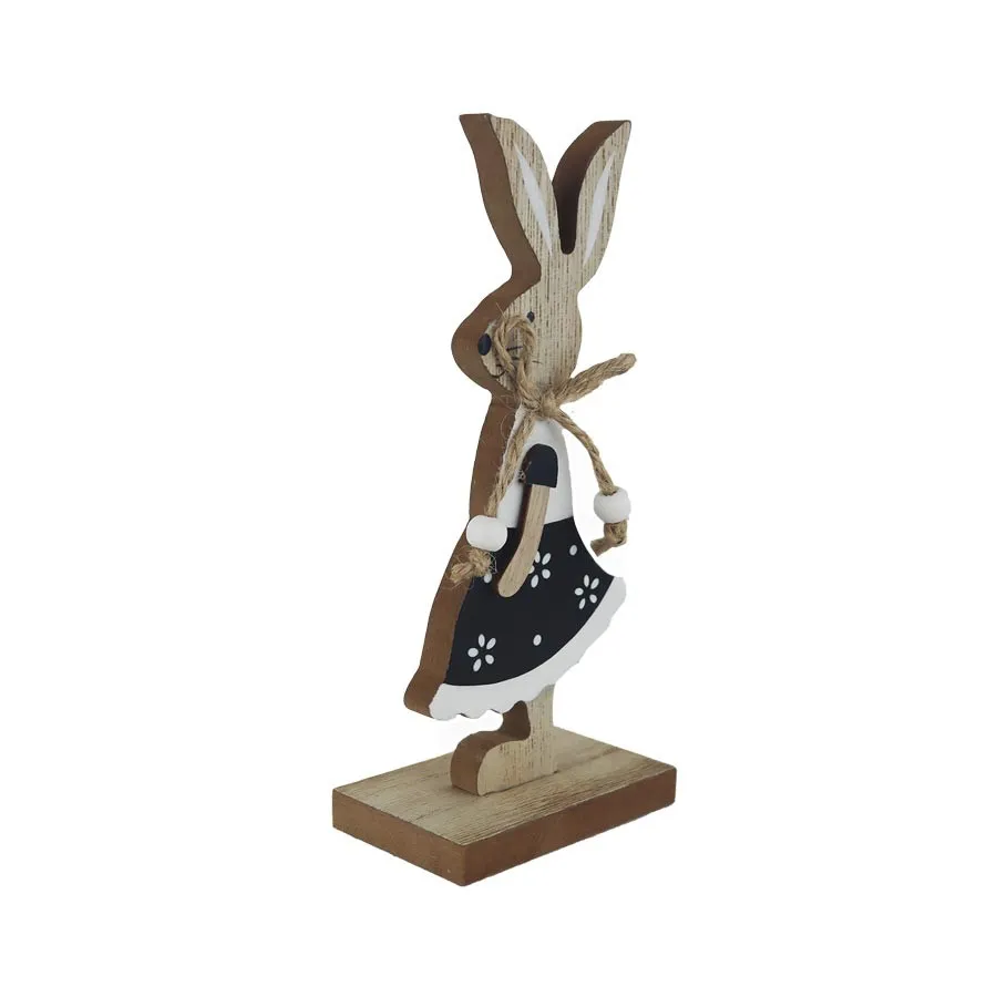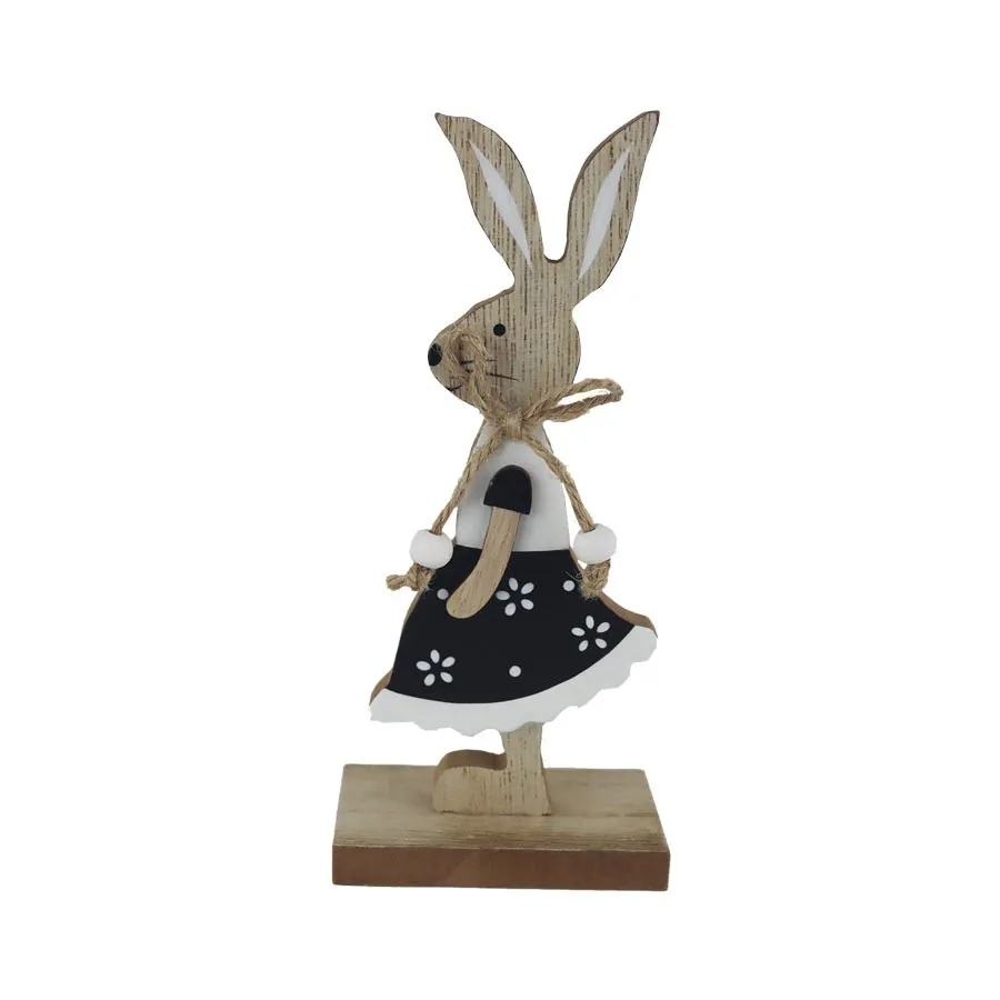 Decorative hare. Dimensions: 7 x 4 cm, height 16 cm. Color: combination of natural, black, white. Wood-based material.