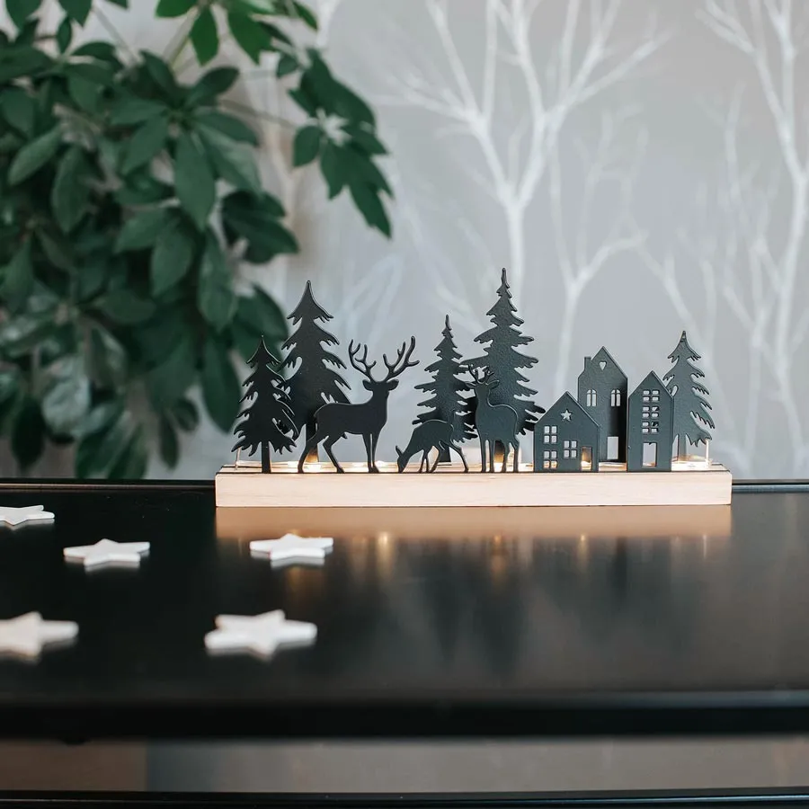 Decorative landscape with LED lighting. Number of LEDs: 10 2 x CR2032 batteries are part of the product. Protection class: IP20 (indoor use)