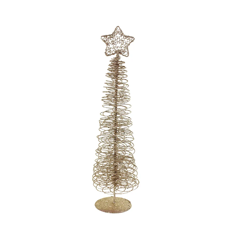 Decorative tree with star. Size: dia 8 cm, height 30 cm. Color: champagne-gold. Material: metal.