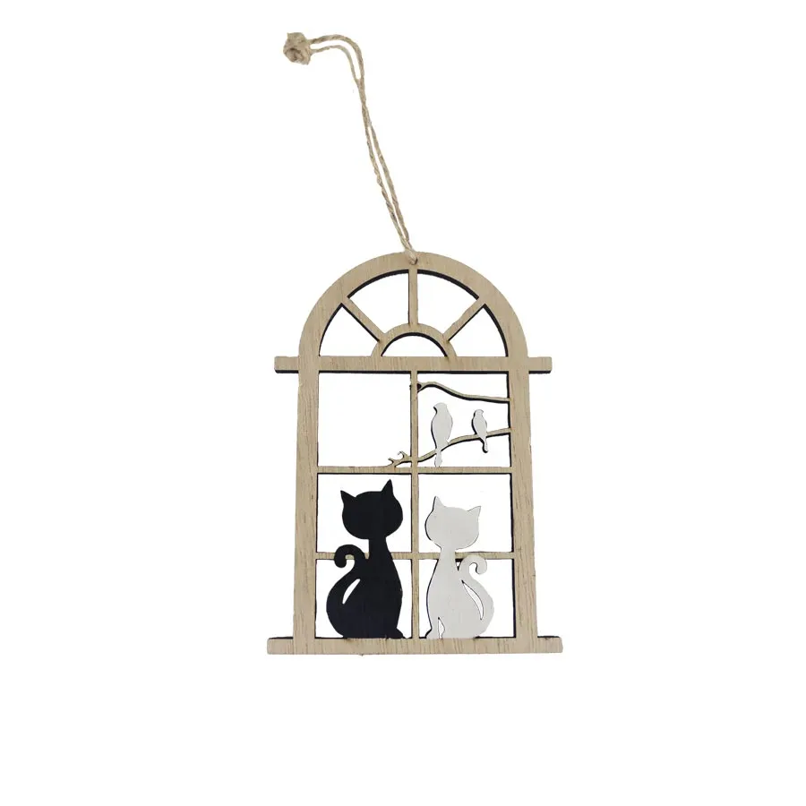 Decoration for hanging. Dimensions: 8 × 11.5 cm, thickness 0.5 cm. Color: combination of natural with white, with black. Wood-based material.