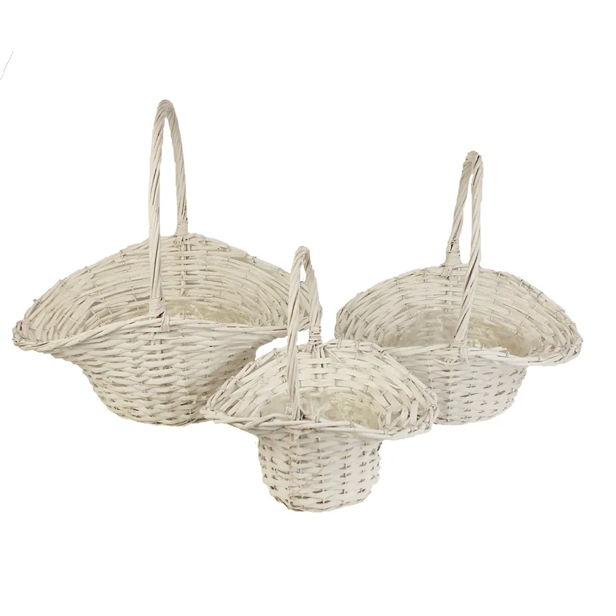 Set contains 3 pcs. Three different sizes. Color: white. Material: wicker, plastic.
