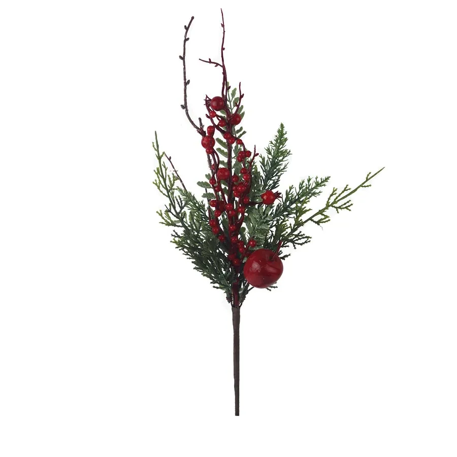 Decorative twig with berries and an apple.