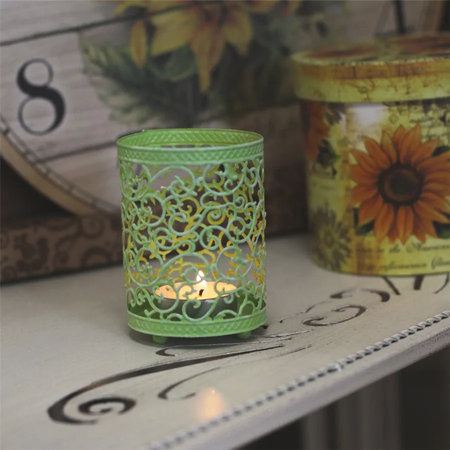 Beautiful decorative candlestick for one tealight.Dimensions: diameter 6 cm, height 9 cm. Color - green Material - metal.