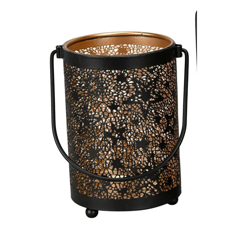 Decorative candle holder for a candle with a star motif.