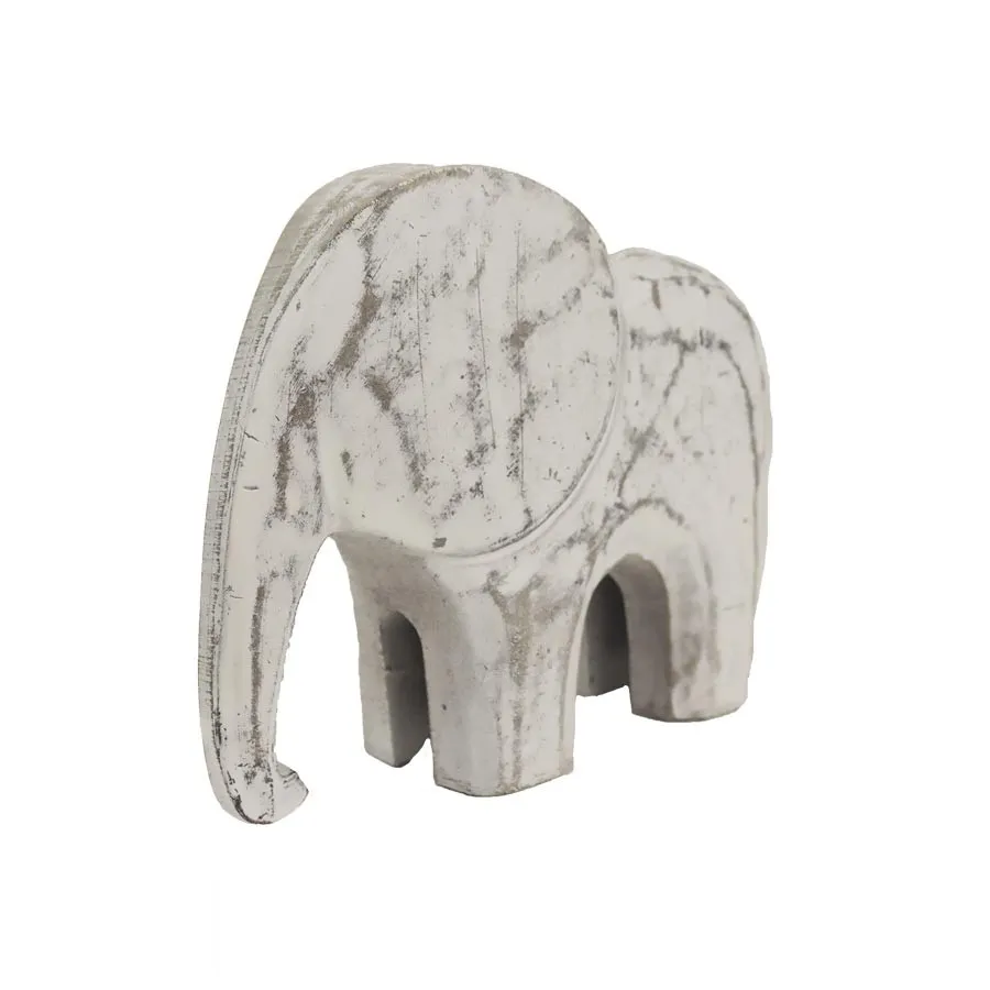 Decorative elephant. Dimensions: 19 x 6 cm, height 16 cm. Color: combination of white and gray. Wood-based material.