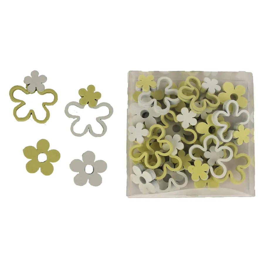 Set contains 24 pcs. 2 different sizes. Color: white, yellow. Material: wood.