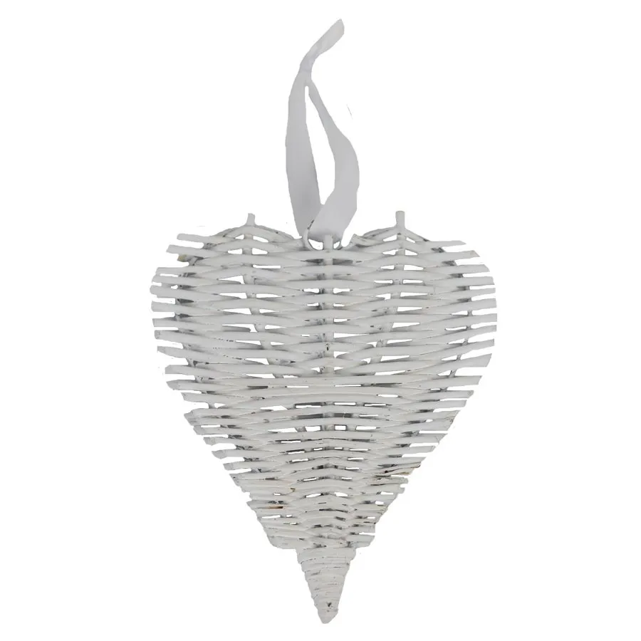 Decorative heart for hanging. Dimensions: 20 x 17 cm, thickness 1.5 cm. White color. Material: wicker, metal.