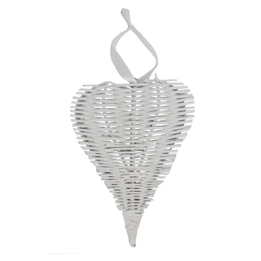 Decorative heart for hanging. Dimensions: 27 x 19 cm, thickness 1.5 cm. White color. Material: wicker, metal.