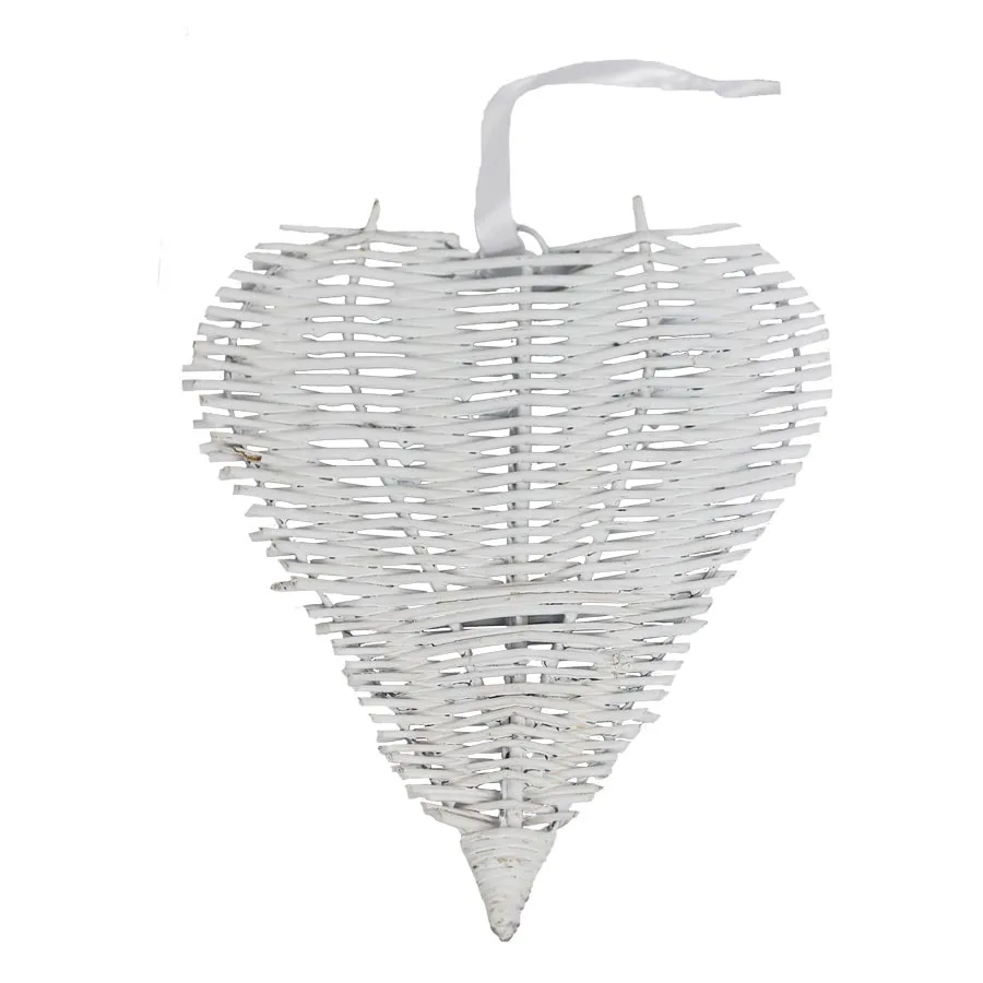 Decorative heart for hanging. Dimensions: 30 x 26 cm, thickness 1.5 cm. White color. Material: wicker, metal.