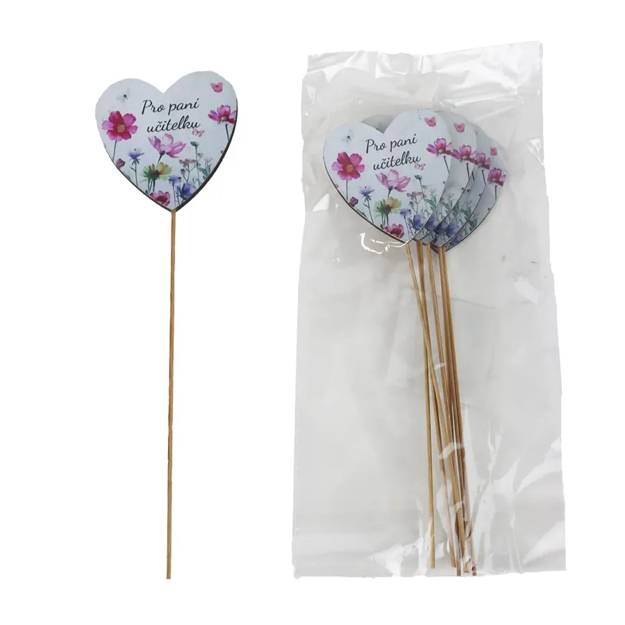 Decorative heart pick with inscription Pro paní učitelku, 8 pcs D7880